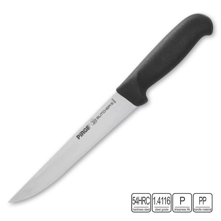 Нож обвалочный прямой 180х2,5 мм предназначен для отделения мяса от костей, отделения филе от жил и жировых прослоек, для разделки мясных туш или их частей. Отсюда и название ножа, так как "обвалок" - древнее русское обозначение для куска, отделённого от чего-либо. Нож используется на мясных производствах в обвалочных цехах для разделки любых видов туш и птицы. Длина лезвия по режущей кромке 180 мм, толщина лезвия у рукояти 2.5 мм. Лезвие ножа длинное и жёсткое и благодаря своей форме прекрасно справляется со своими задачами.